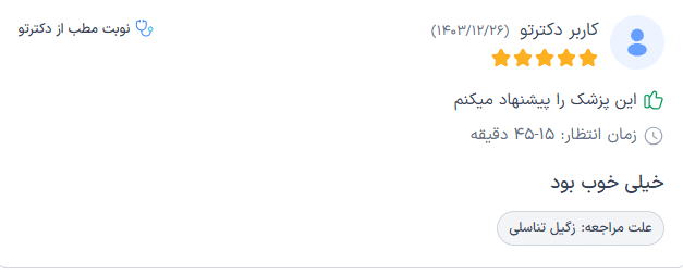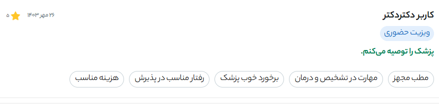 دکتر منطقه تجربه کاری امتیاز (از 5)