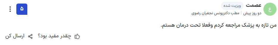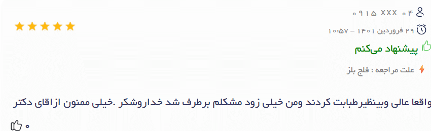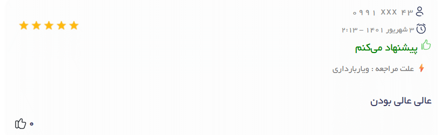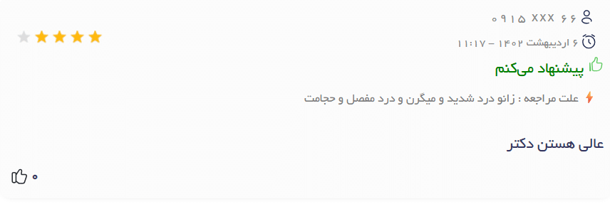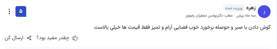 | آدرس: | مشهد، چهارراه خیام، بیستون 2، ساختمان پزشکان بیستون، طبقه 4 |