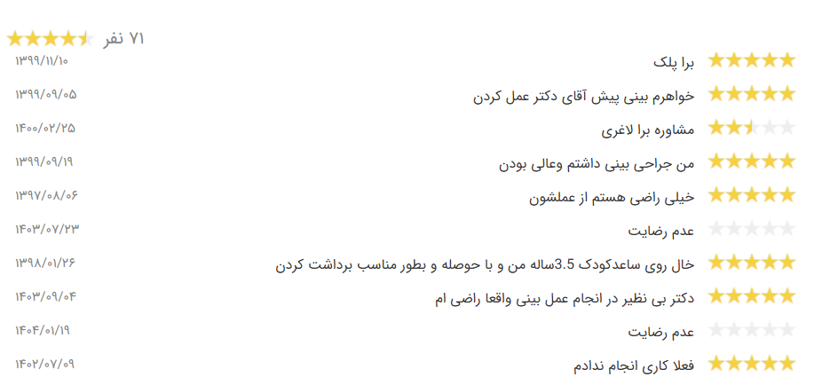 - رضایت بیماران قبلی