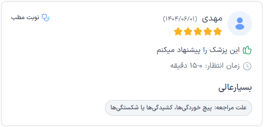 دکتر | منطقه | تجربه کاری | امتیاز (از 5) |