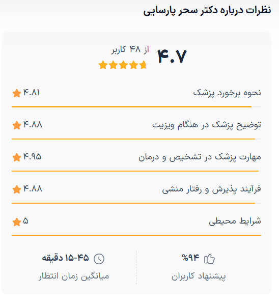 دکتر سحر پارسایی | بلوار امامت | در دست نیست. | 3.1 |